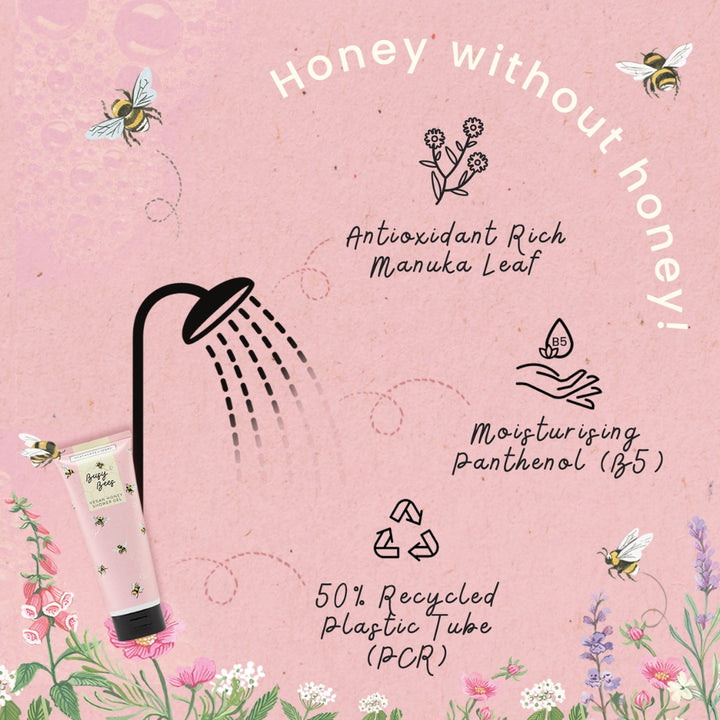 Bring the skin-kind benefits of vegan honey to shower time with our shower gel infused with glycerin, antioxidant rich manuka leaf and moisturising bee balm flower extracts.